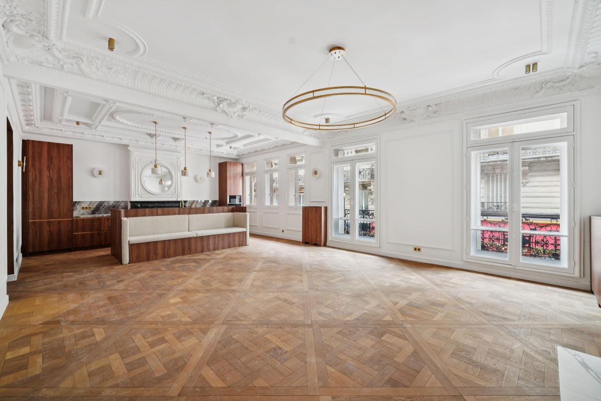 Au coeur du Triangle d'Or, entre l'avenue George V, l'avenue Montaigne et la rue François 1er, Engel & Völkers vous présente un appartement de 165,6 m² entièrement rénové avec des matériaux d'exception.