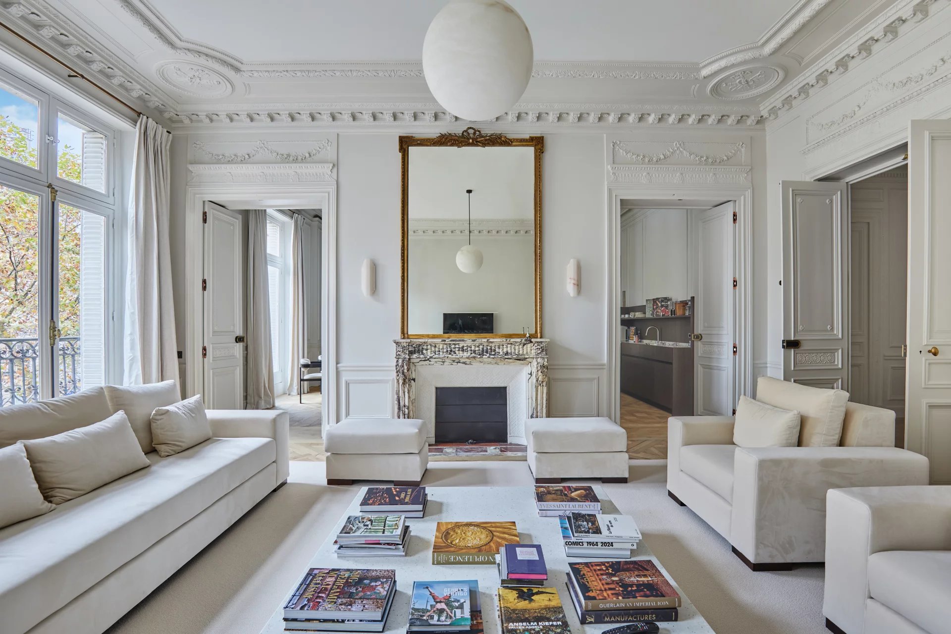 Idéalement situé avenue Marceau, à la lisière du Triangle d’Or, cet élégant 220 m² occupe l’étage noble d’un immeuble haussmannien en pierre de taille.