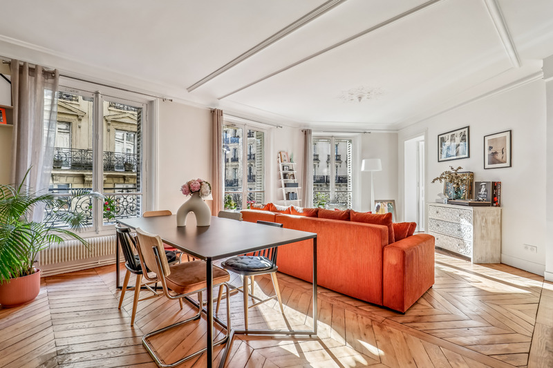 Au coeur du 9e arrondissement, dans le quartier recherché du Faubourg Montmartre, découvrez ce sublime duplex niché aux deux derniers étages d'un immeuble de charme avec ascenseur.