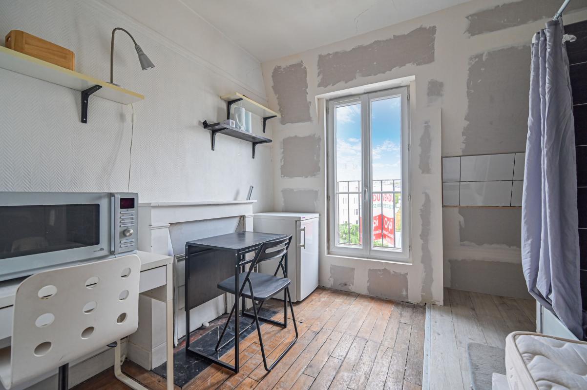Studio de 16m2 proche métro Charonne, vendu loué composé : entrée, séjour, cuisine, salle de bains avec WC