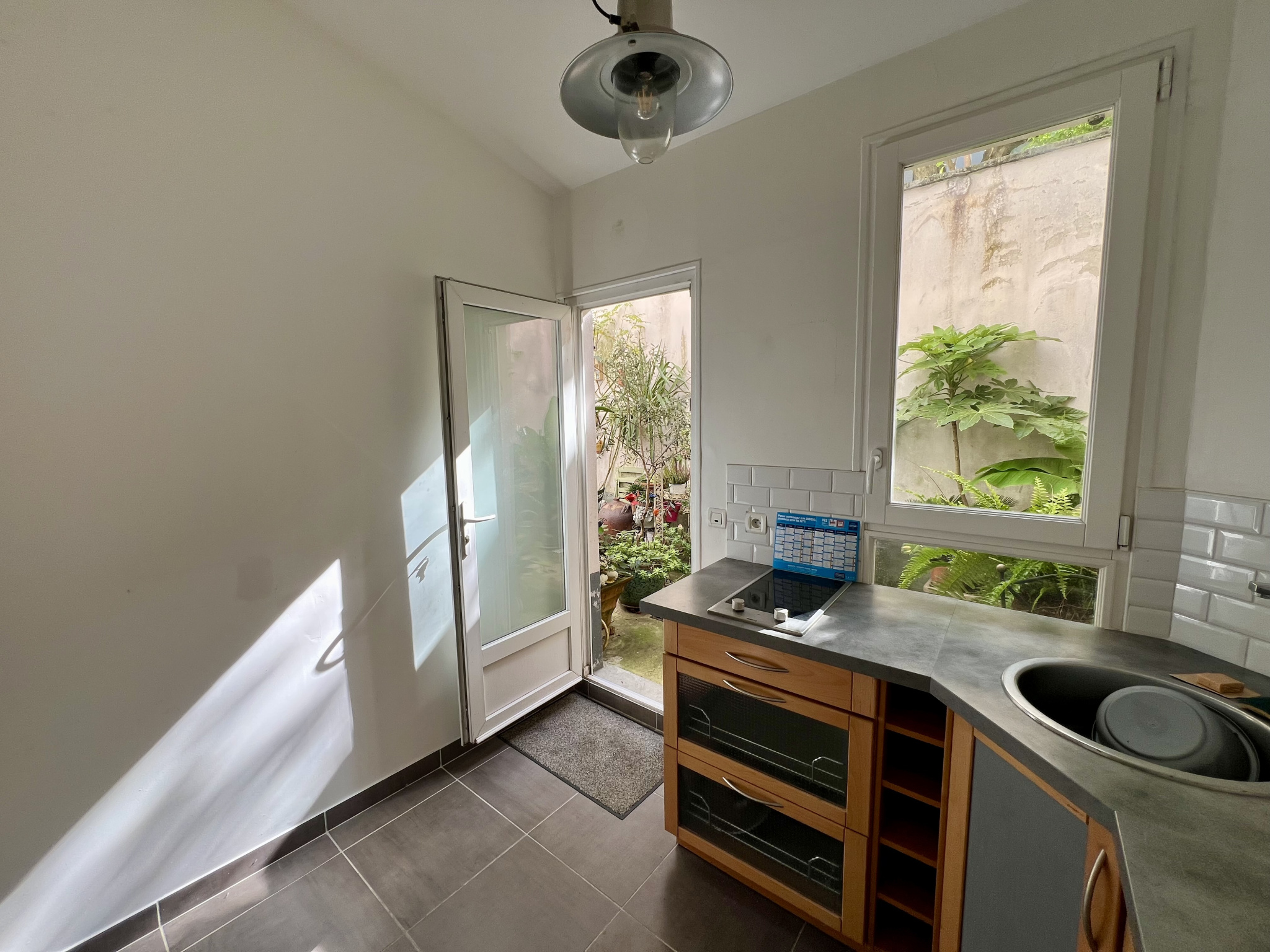 1-2 pièces 29m2 rénové avec courette 5m2, quartier Denfert Rochereau Mouton Duvernet 75014, bon immeuble 1900 ravalé, entrée sur séjour coté rue avec dégagement salon cuisine ouverte donnant sur courette Sud-Est, sde, wc, proche commerces, RER B denfert rocher...