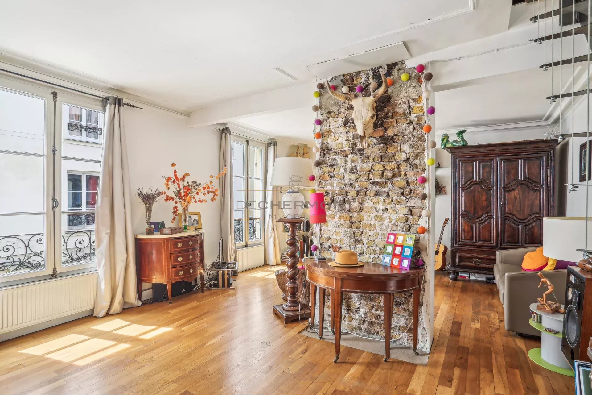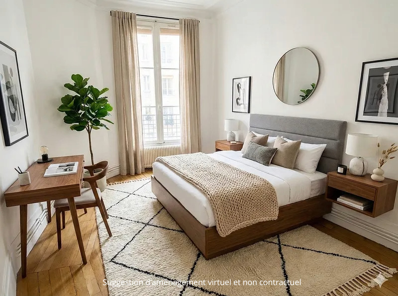 Au troisième étage d'un immeuble ancien sécurisé, cet appartement traversant de 46 m² séduit immédiatement par sa luminosité et son charme authentique.