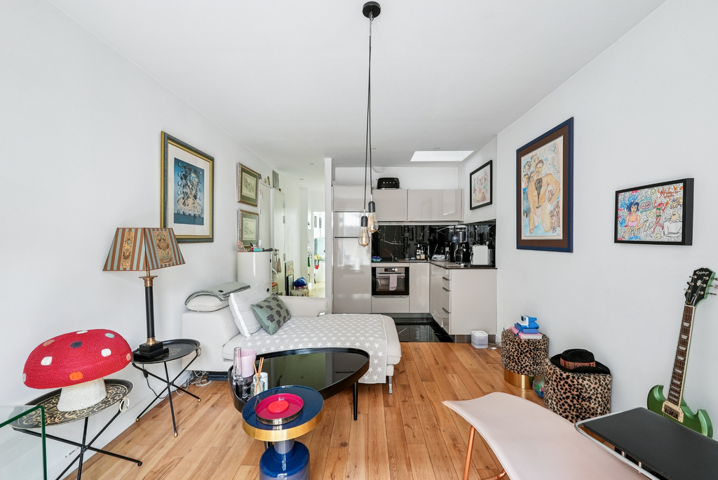 Idéalement situé au RDC d'un immeuble post-haussmannien aux parties communes soignées, ce studio (possiblement transformable en 2 pièces) de 36 m² loi Carrez (37 m² au sol) dispose d'une terrasse de 11 m², sans vis-à-vis, orientée nord-sud.