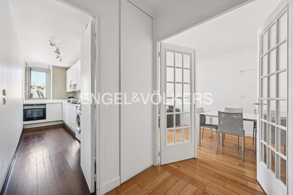 Au coeur d'un quartier commerçant du 16ème arrondissement de Paris, Engel & Völkers vous invite à découvrir cet appartement lumineux de 66 m² en excellent état, avec un aperçu direct sur la Tour Eiffel