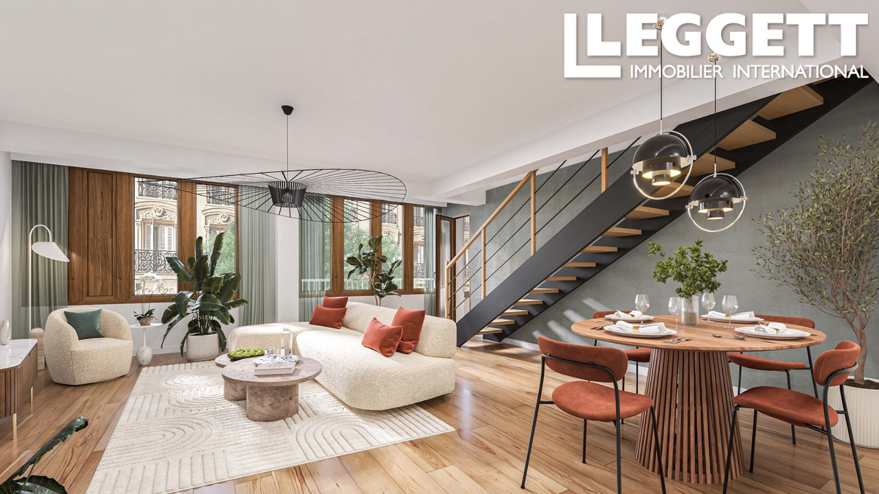 Alexandrine Collard vous propose un appartement traversant de 95 m2 (93,46 m2 Carrez) en duplex au coeur du quartier de Passy, ce penthouse unique qui s'apparente à une véritable maison sur les toits de Paris.