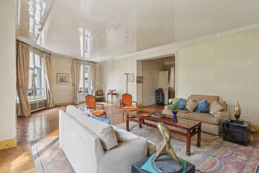 Engel & Völkers vous propose à la vente un appartement familial et de réception de 218 m² au sol (212,99 m² carrez), situé au 1er étage d'un immeuble haussmannien récemment ravalé avec ascenseur et gardien. L'appartement ayant conservé tout le c...