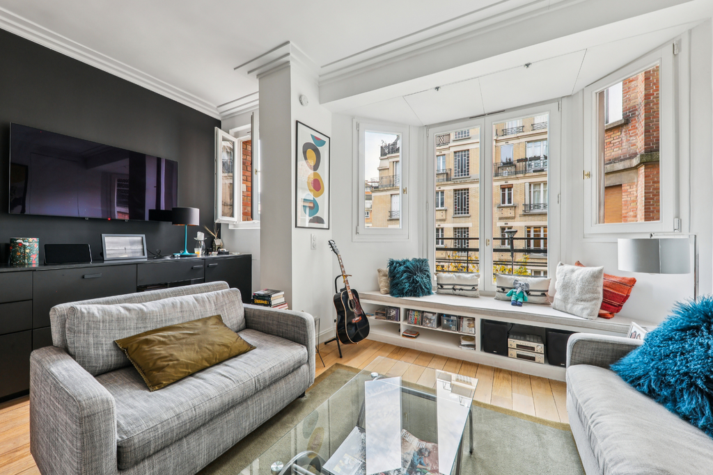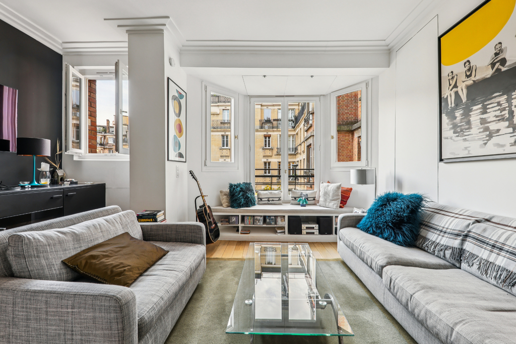 Au deuxième étage d'un bel immeuble en pierre de taille, situé dans un quartier particulièrement recherché, ce charmant trois-pièces a été entièrement rénové par architecte.