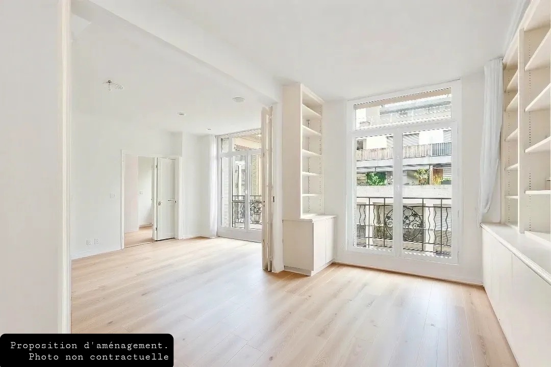 Situé au 2ème étage avec ascenseur d'un bel immeuble Haussmannien de 1901 exposé Sud Est, cet appartement se compose d'un double séjour de ...