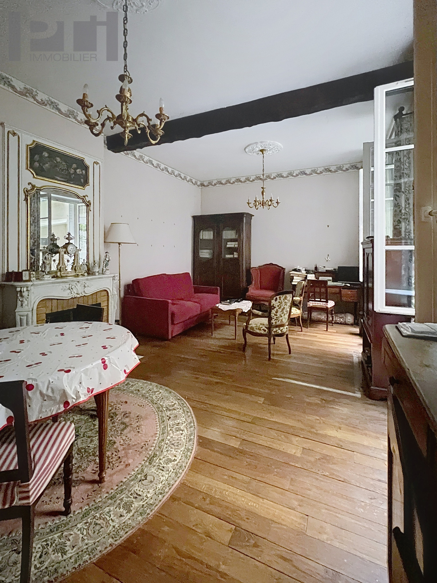 Dans bel immeuble Pierre de Taille avec digicode et interphone, au rez-de-chaussée, un appartement de 58,62 m2 loi Carrez et 59,12 m2 au sol + remise de 1,39 m2 dans la cour : entrée, cuisine sous verrière, double réception avec 2 fenêtres sur grande cour avec...