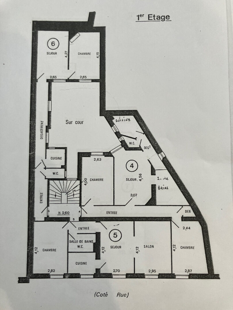 Rue de Belleville, un appartement occupé de 54.41m2, au 1er étage, 3 pièces 54.11 m² comprenant entrée - un séjour - 2 chambres - une salle de douche - wc séparés- une cuisine équipée.