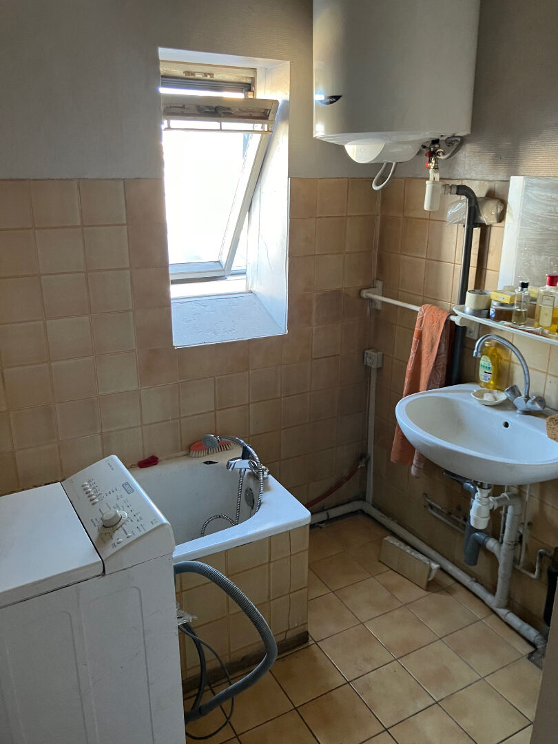 Rue de Belleville, un appartement occupé de 31.75m2, au 6éme étage, comprenant 3 pièces dont un séjour, 2 chambres, une salle de bain, et une cuisine équipée.