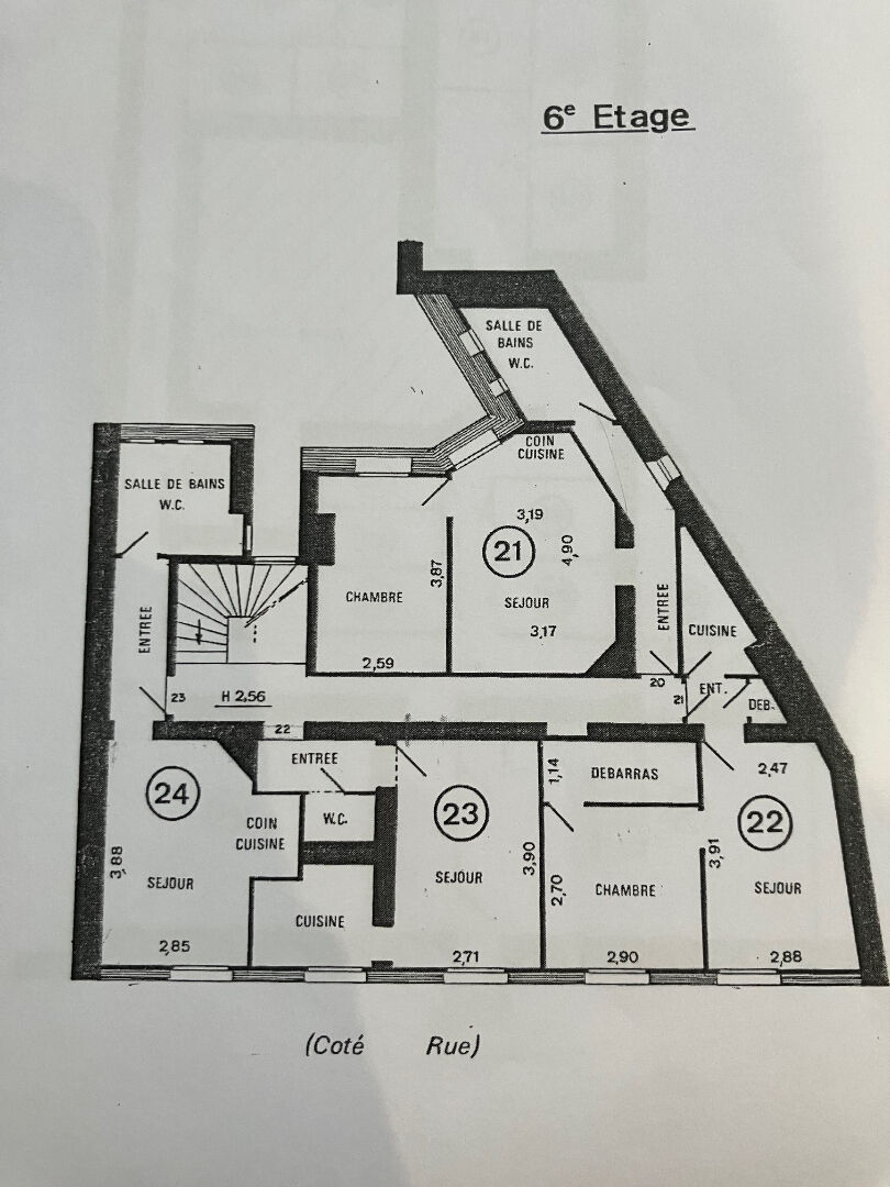 A proximité de la place des fêtes dans une partie commerçante de la rue de Belleville, un appartement occupé de 53,84m2, au 5ème étage sans ascenseur, comprenant 3 pièces dont une entrée, un séjour, 2 chambres, une salle de bain, et une cuisine équipée.