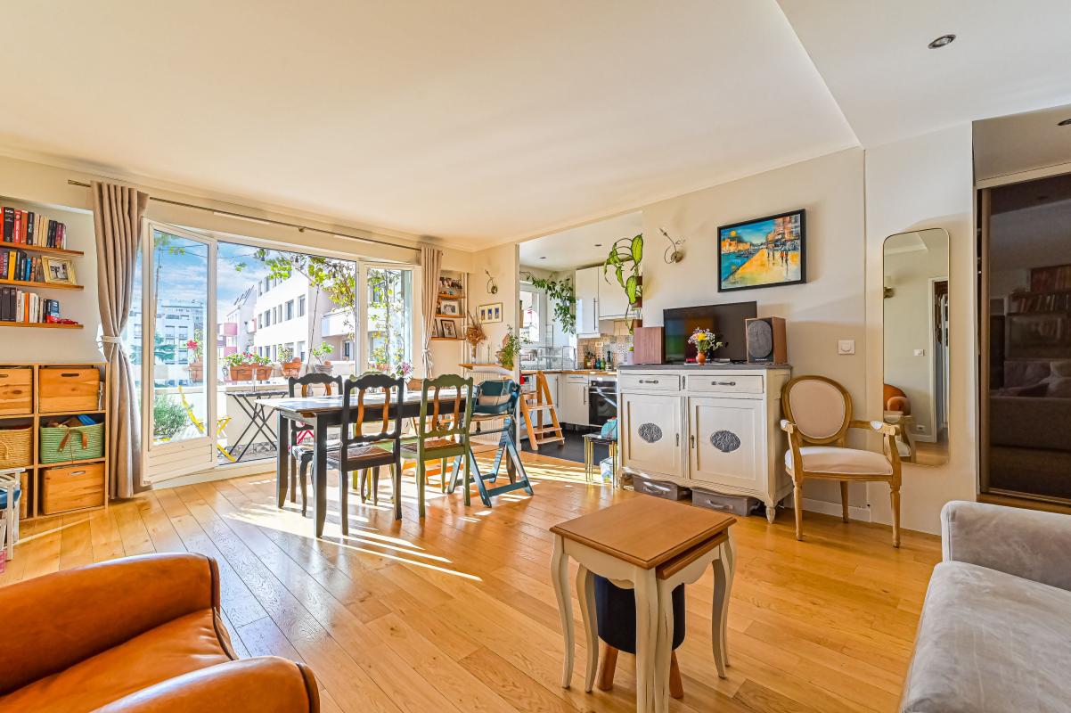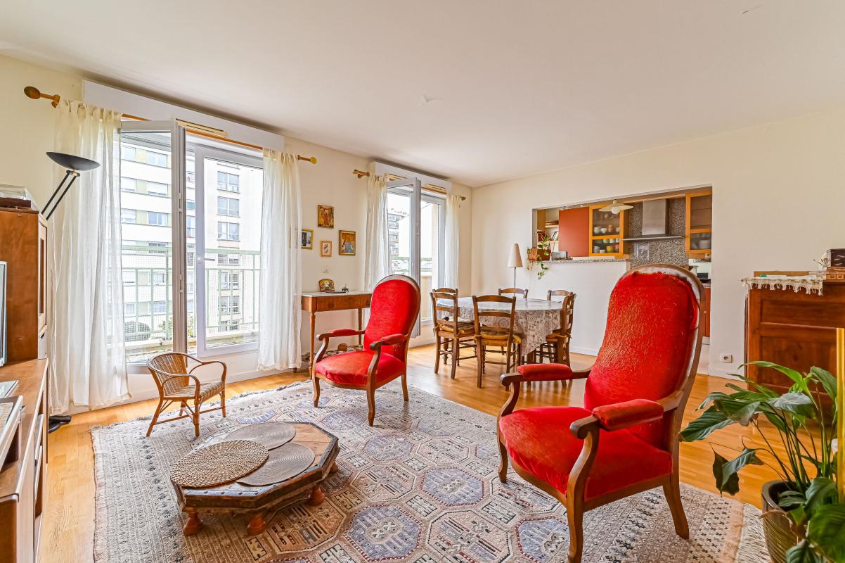 A proximité du Cours de Vincennes, dans un immeuble bien entretenu face au Parc Sarah Bernhardt, en étage élevé, vue très dégagée, nous vous proposons ce spacieux 4 pièces en bon état général, comprenant un séjour avec cuisine U.S, 3 chambres, salle de bains e...