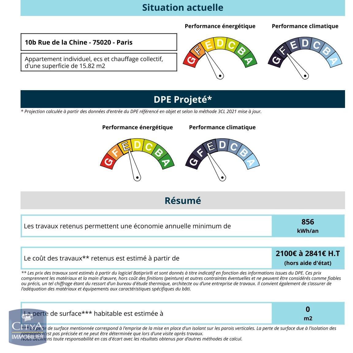 STUDIO DE 15,82 M² PLUS 12 M² DE TERRASSE A VENDRE OCCUPE DANS LE 20EME ARRONDISSEMENT, RUE DE LA CHINE. - À vendre - Studio avec terrasse privative - 15,82 m² + 12 m² d'extérieur - Vendu occupé - Rue de la Chine, Paris 20e