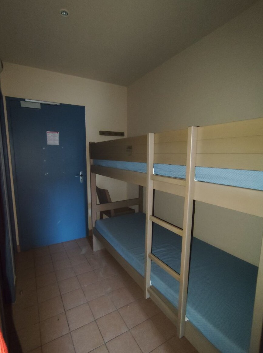 Comprenant une entrée avec lit superposé, un espace de vie ouvert sur une kitchenette, une salle de bains, un wc, placards.
