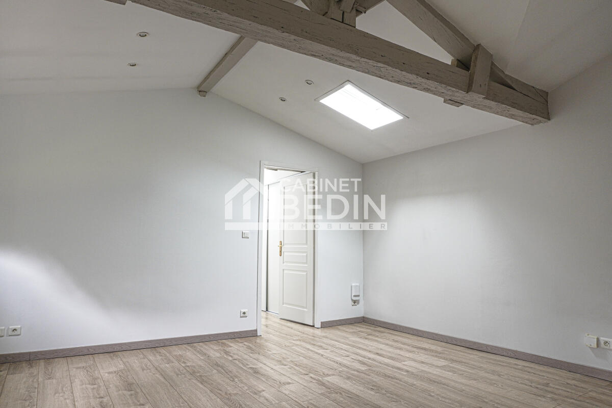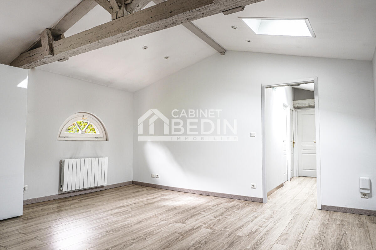 PESSAC CENTRE. Au premier et dernier étage d'un bâtiment historique situé au c?ur de la Ville de Pessac, cet appartement en parfait état jouit d'un parc privé d'exception. Deux belles chambres dotées de poutres d'époque, un séjour aux large...