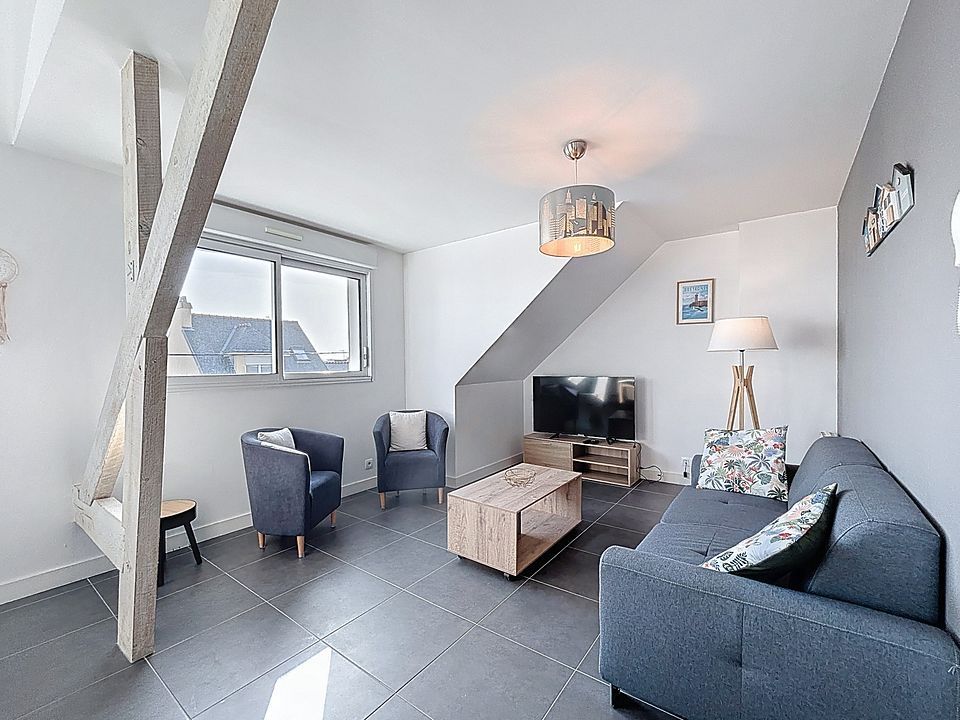 En exclusivité Idéalement situé dans le secteur très recherché de Lomener, à seulement quelques pas du port, des commerces et des transports en commun, découvrez ce superbe appartement plein de charme, niché au dernier étage d'une petite copropriété.