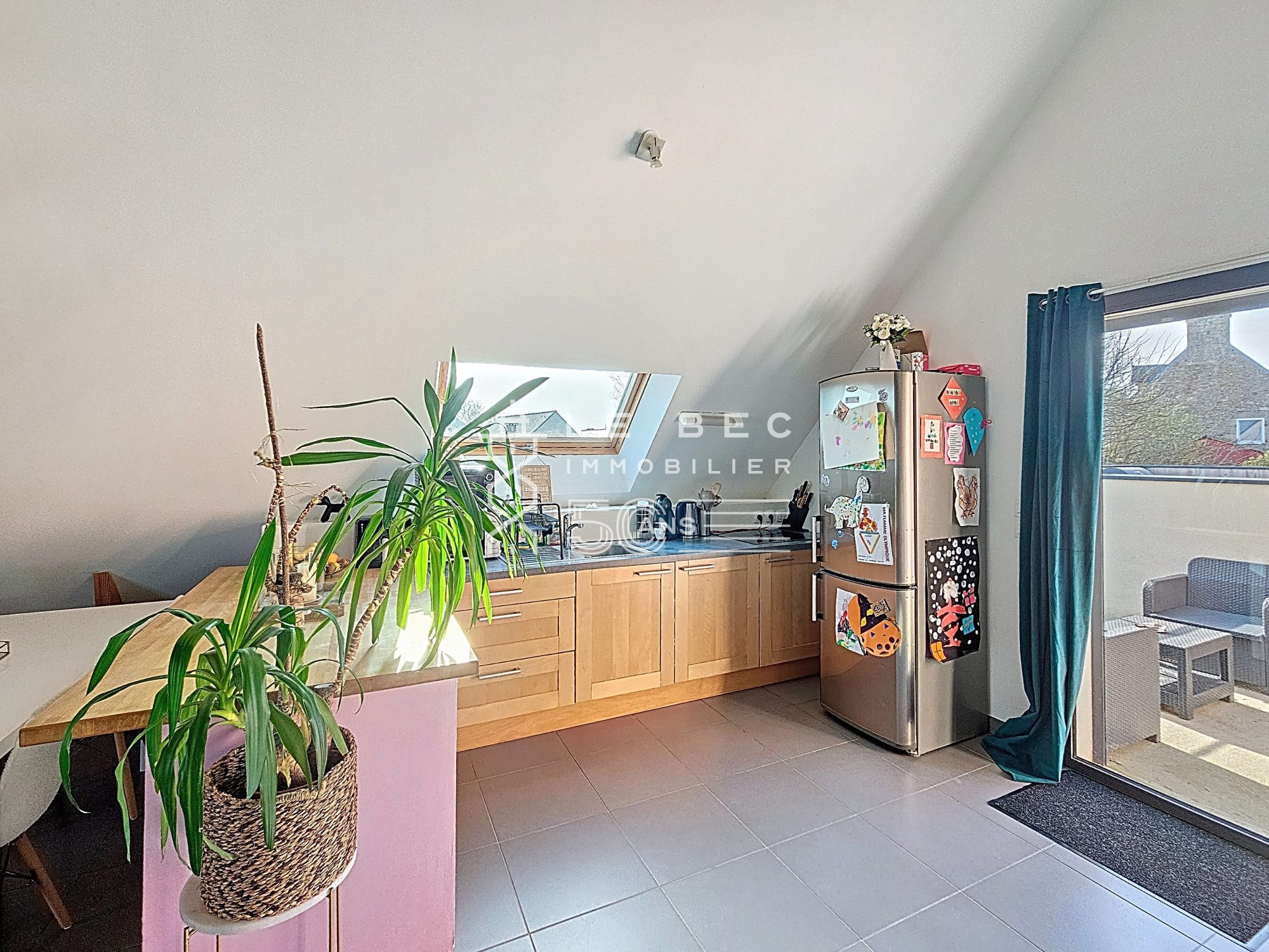 SPÉCIAL INVESTISSEUR. A quelques minutes des plages, au coeur de la ville de Plouhinec, beau T3 avec terrasse plein Sud. Cet appartement lumineux vous offre une entrée sur un grand espace vie avec coin cuisi...
