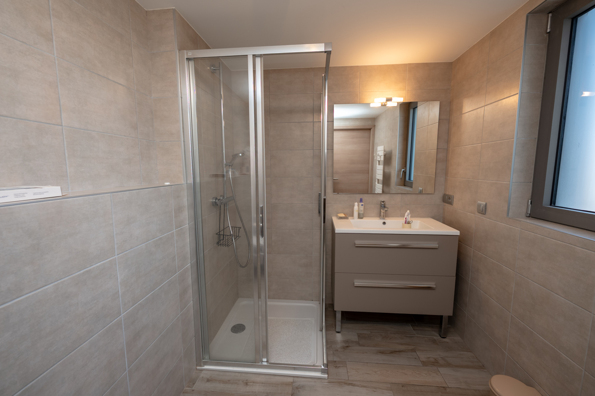 Il comprend une entrée, deux chambres, une salle d'eau avec douche moderne et WC, ainsi qu'une cuisine aménagée et équipée ouverte sur un s...