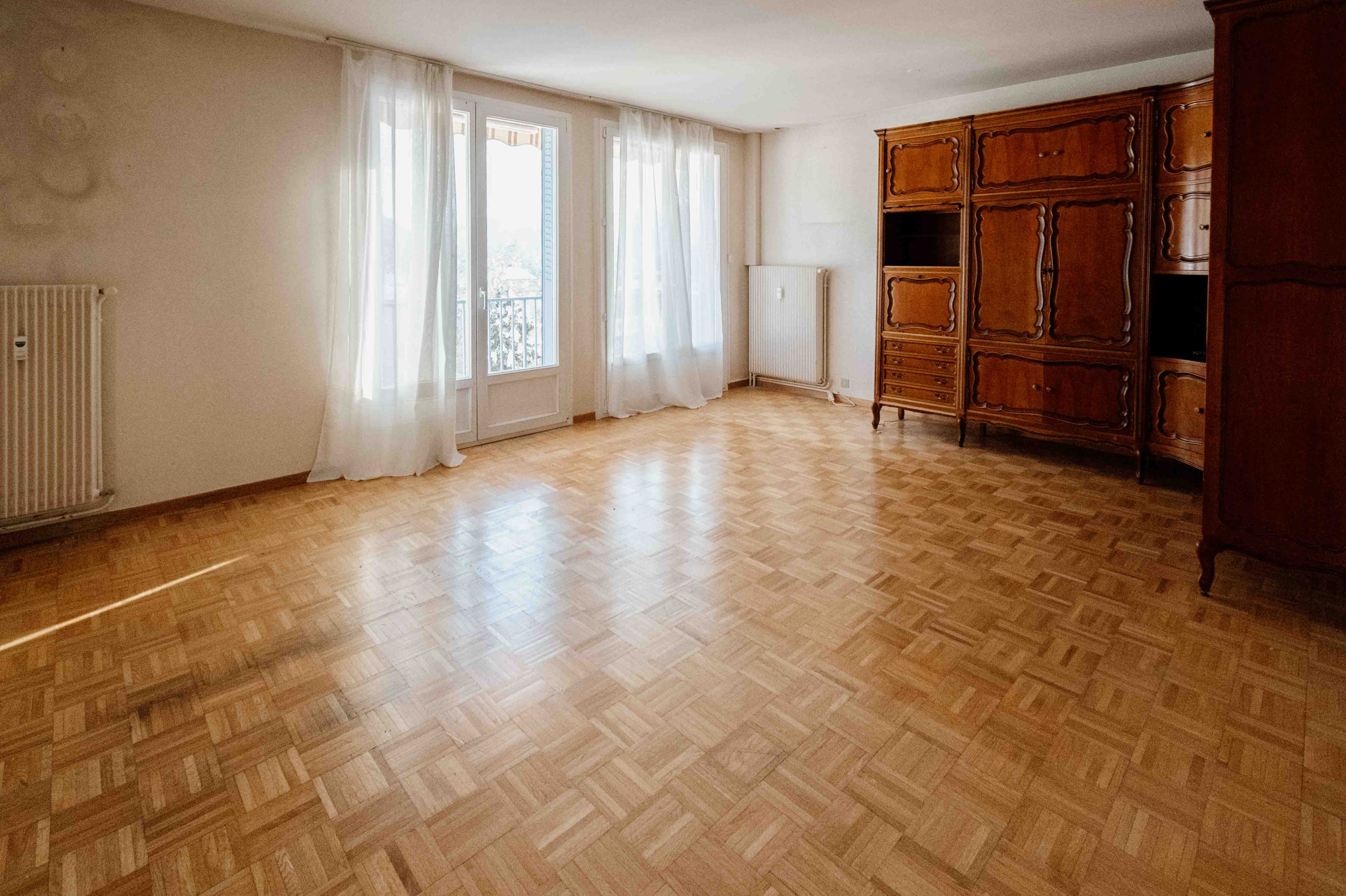 Appartement traversant de type 4 comprenant : entrée, cuisine, vaste salon-séjour, 2 grandes chambres, bureau, salle d'eau et WC.