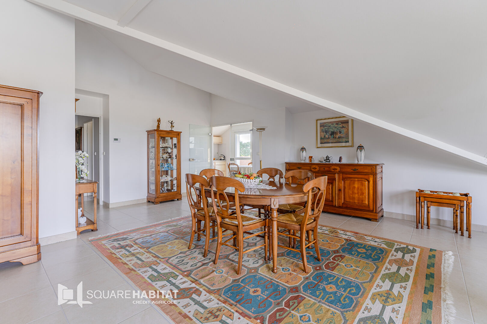 Entrée, séjour avec cuisine aménagée ouvrant sur terrasse,