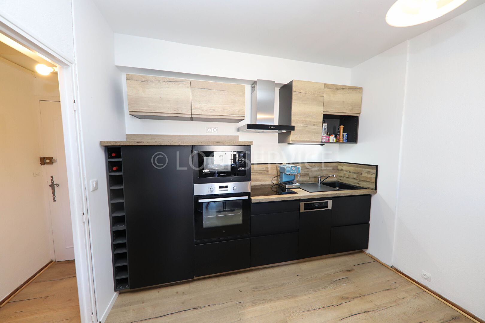 cuisine-bar aménagée ouverte sur le séjour.