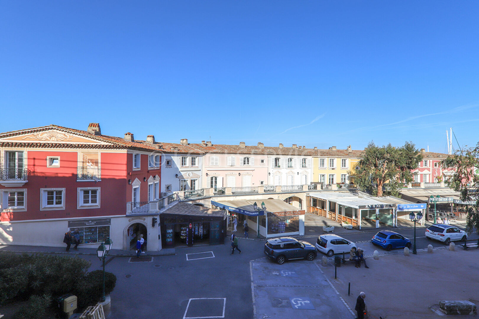 Sur la place principale, un appartement avec une entrée, un salon et son coin cuisine, prolongé par un balcon avec une vue sur Port Grimaud. Une chambre, une salle de douches et wc. parking. ascenseur. idéal pied à terre pour vos vacances
