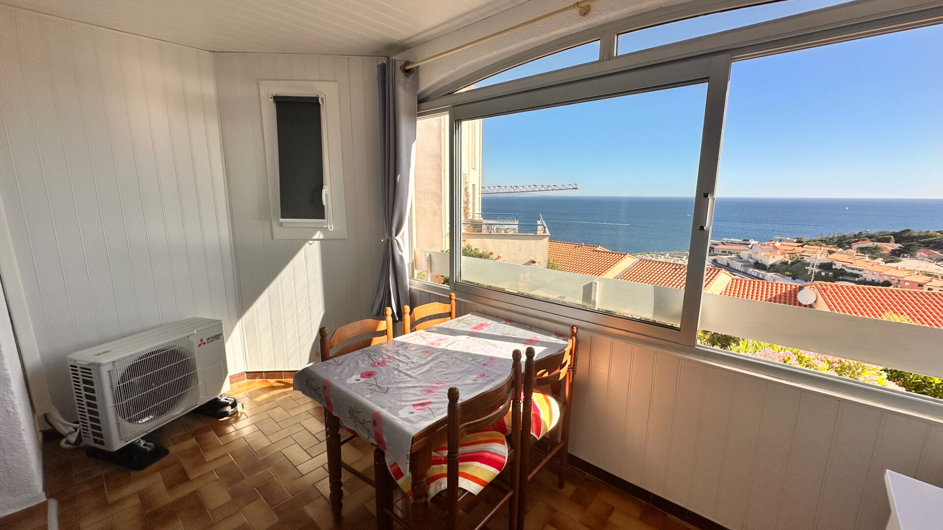 Port-Vendres, Appartement de type T2 de 32m² offrant une pièce à vivre avec coin cuisine, un WC, une salle d'eau et une chambre; L'appartement offre également une loggia de 7.5 m² avec une vue mer. Le lot comprend également un emplacement de statio...
