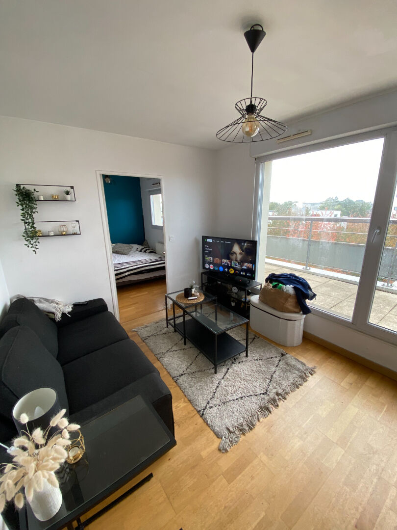 RENNES - Moulin du Comte - Dans une copropriété de 2012, appartement T2 de 37m², situé au 1er étage et comprenant: entrée avec placard, séjour avec cuisine américaine aménagée, équipée de plaque, hotte, frigo, chambre avec balcon, salle d'eau/WC.