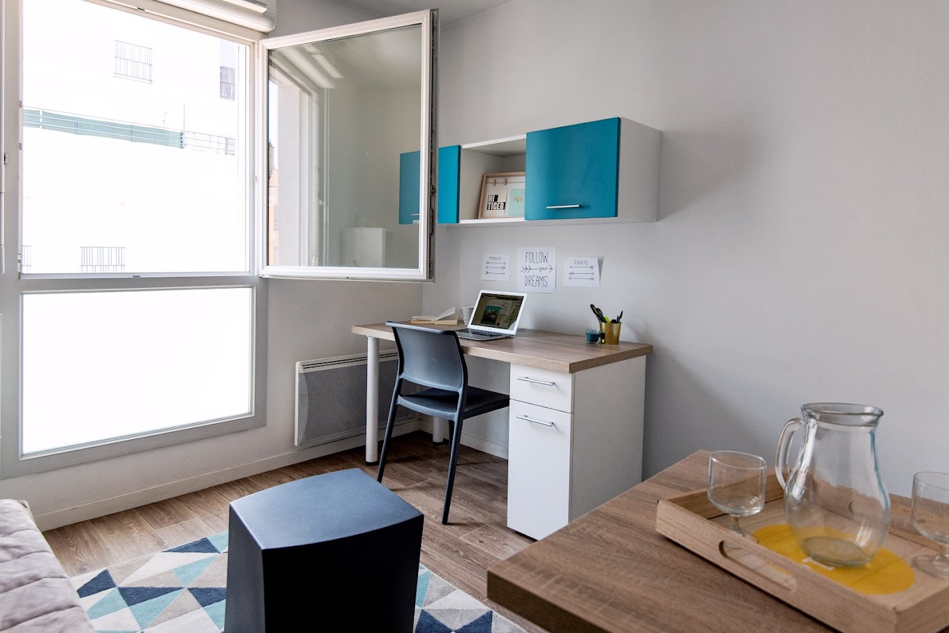 Studio de 21 m² avec balcon au 4ème étage d'une résidence étudiante situé à 5 minutes à pied de l'arrêt de métro CHARPENNE à VILLEURBANNE. meublé et donc doté du mobilier suivant :