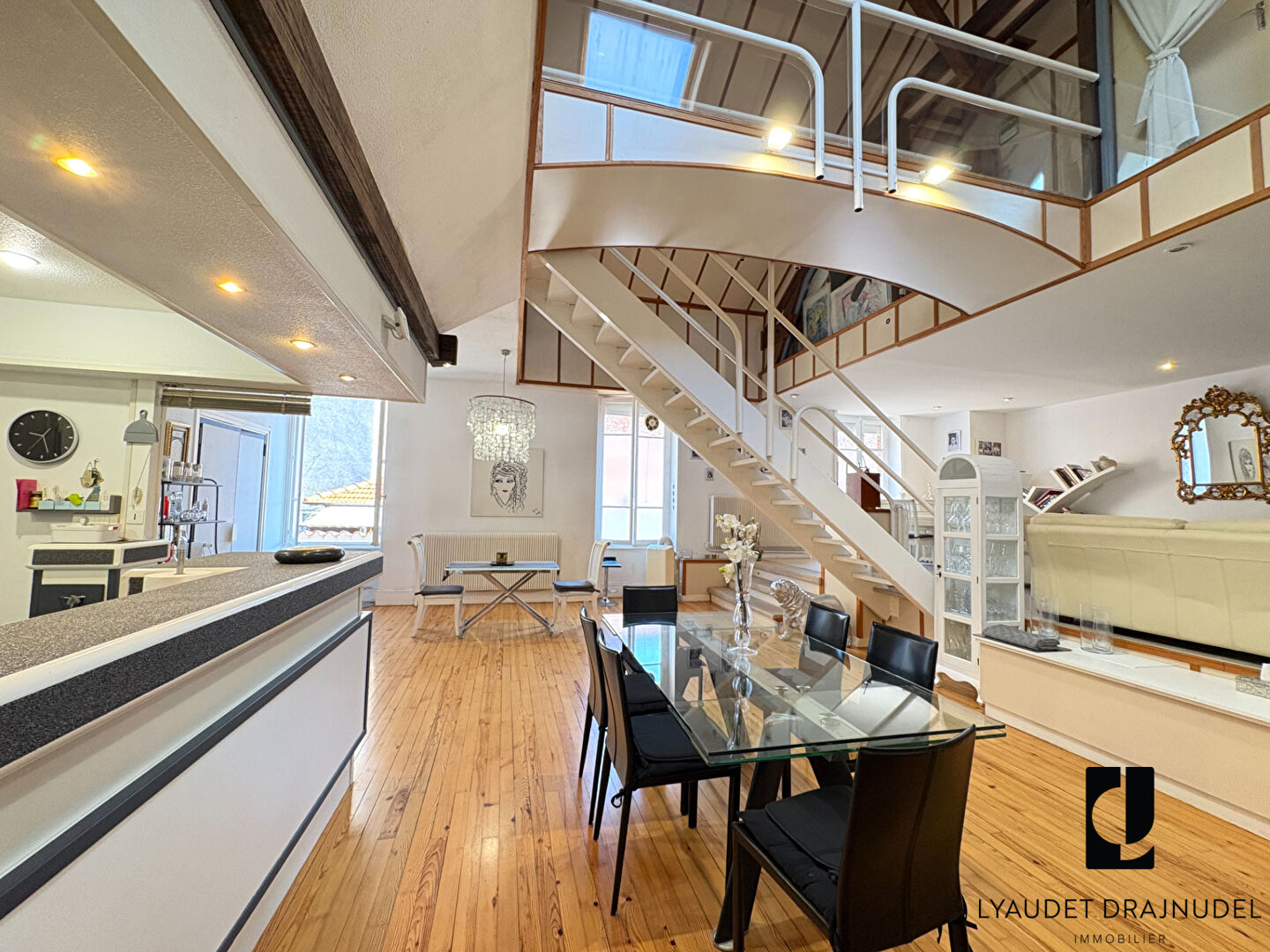 L'agence Lyaudet Drajnudel spécialiste en immobilier d'entreprise et résidentiel vous propose à la vente un magnifique appartement/maison de T7 représentant 225 m2 habitable et une terrasse privative à l'abris des regards d'environ 26 m2. <...