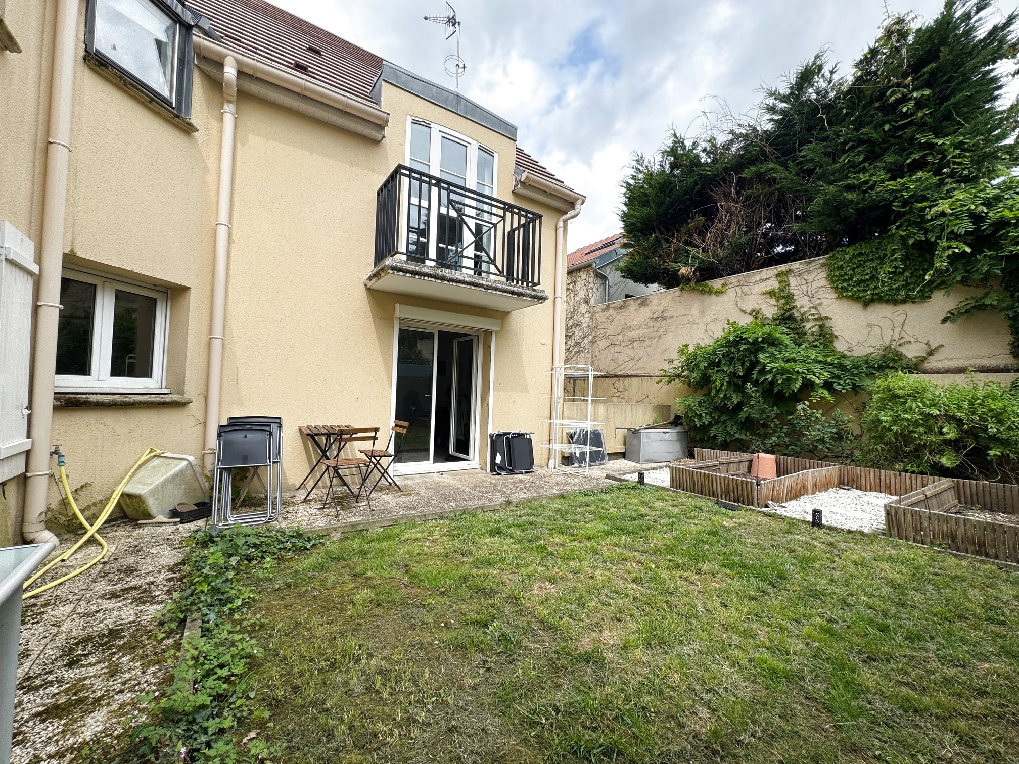 EXCLUSIVITE. A roissy en France Village, appartement de 2 pièces de 49 m2 habitable avec jardin comprenant entrée avec placard, séjour avec cuisine ouverte aménagée et équipée, chambre, salle de bains, WC. Jardin et terrasse de 25m2. Garage au sous sol.. Les h...