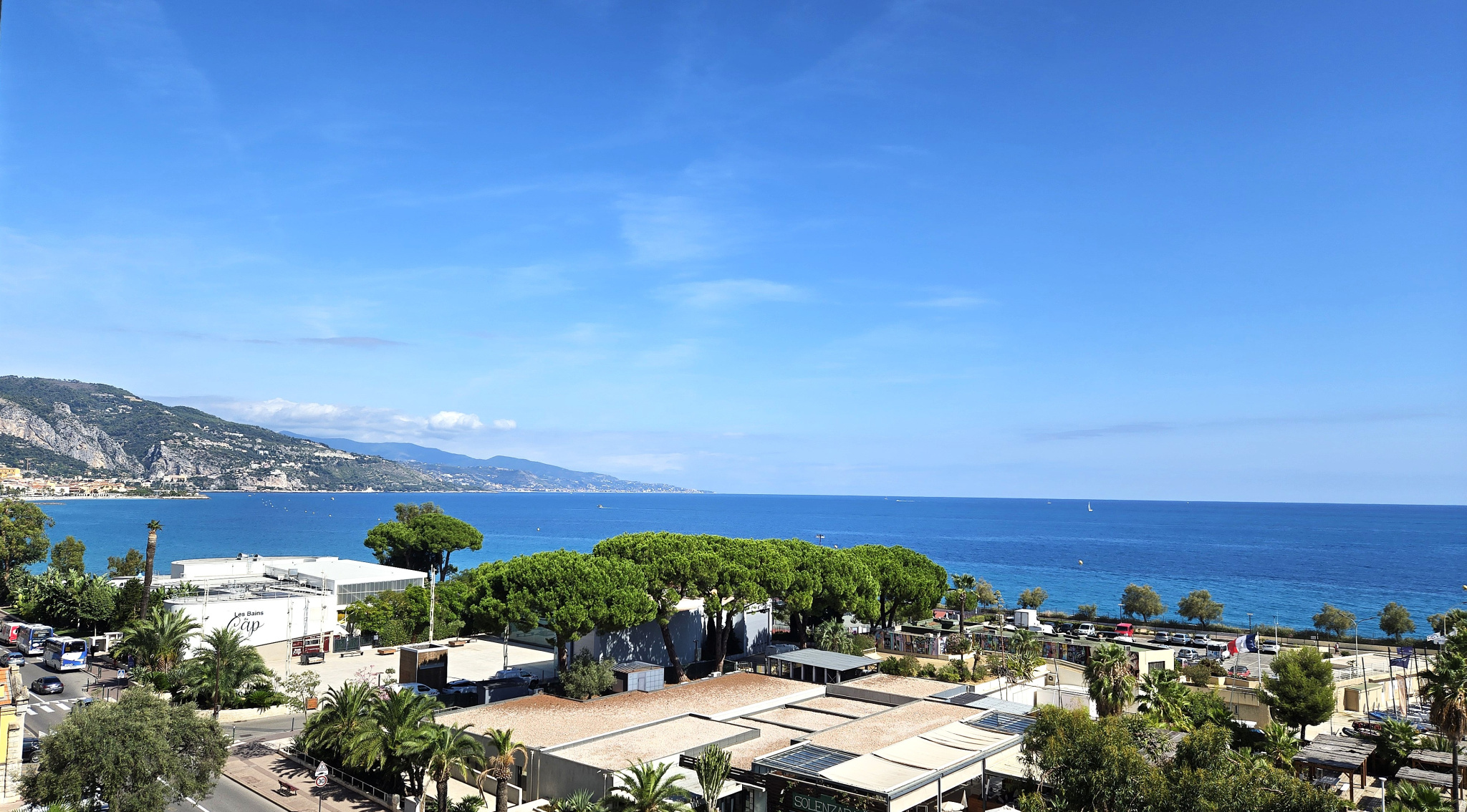 En exclusivité sur Roquebrune Cap Martin, résidence en FRONT DE MER, 2 pièces de 29 m2 avec TERRASSEde 17m2, CAVE et PARKING.