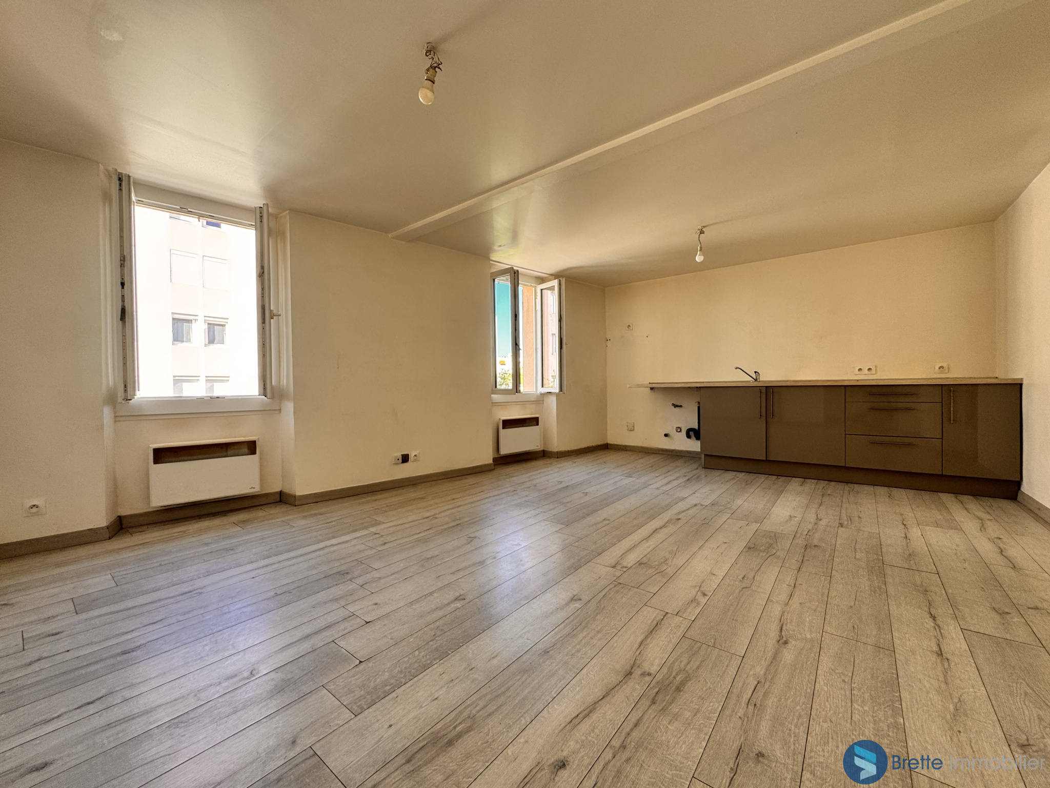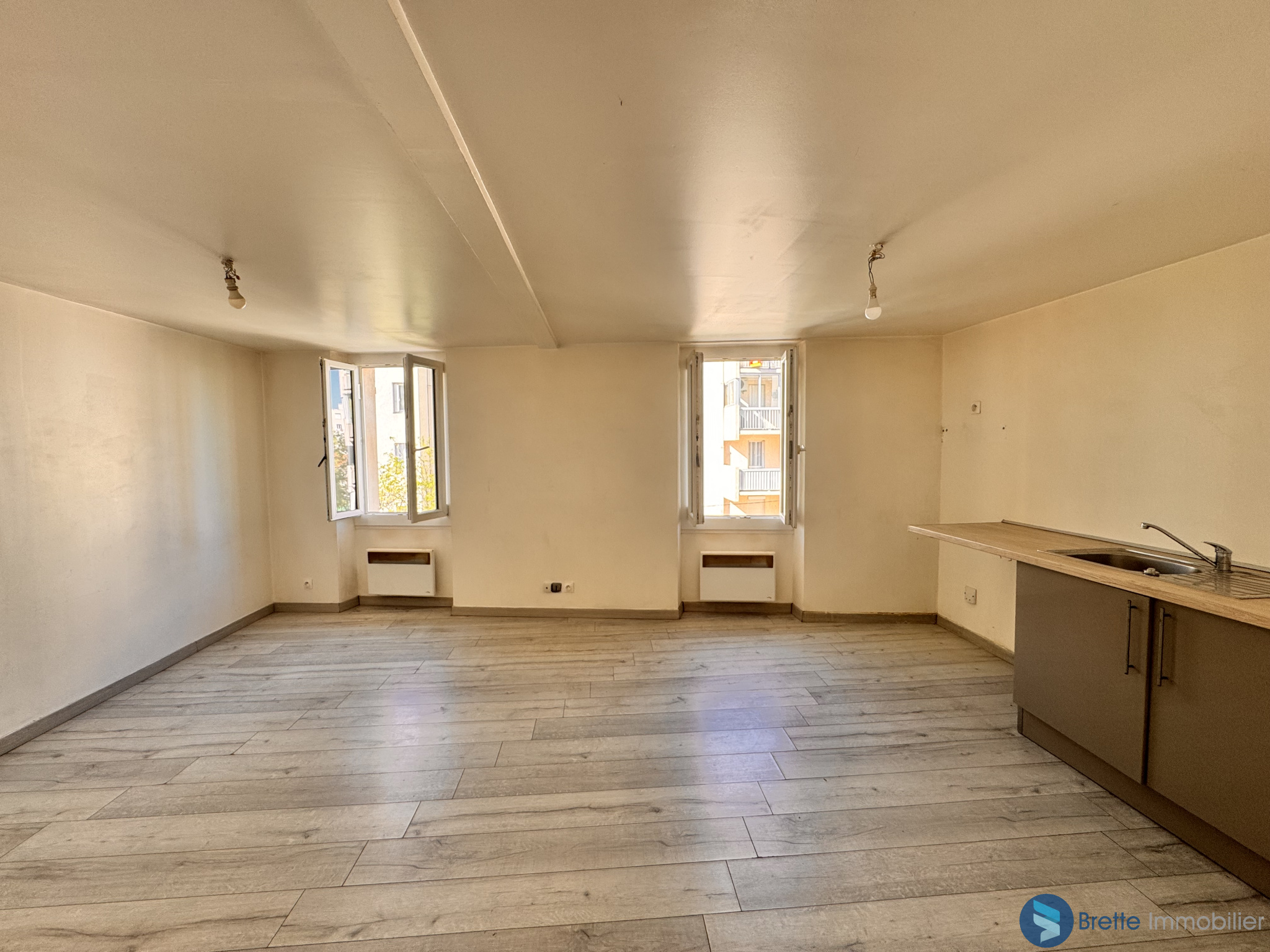 Il se compose d'un séjour lumineux, de deux chambres, d'une cuisine indépendante à aménager selon vos envies, ainsi que d'une salle d'eau. L'appartem...