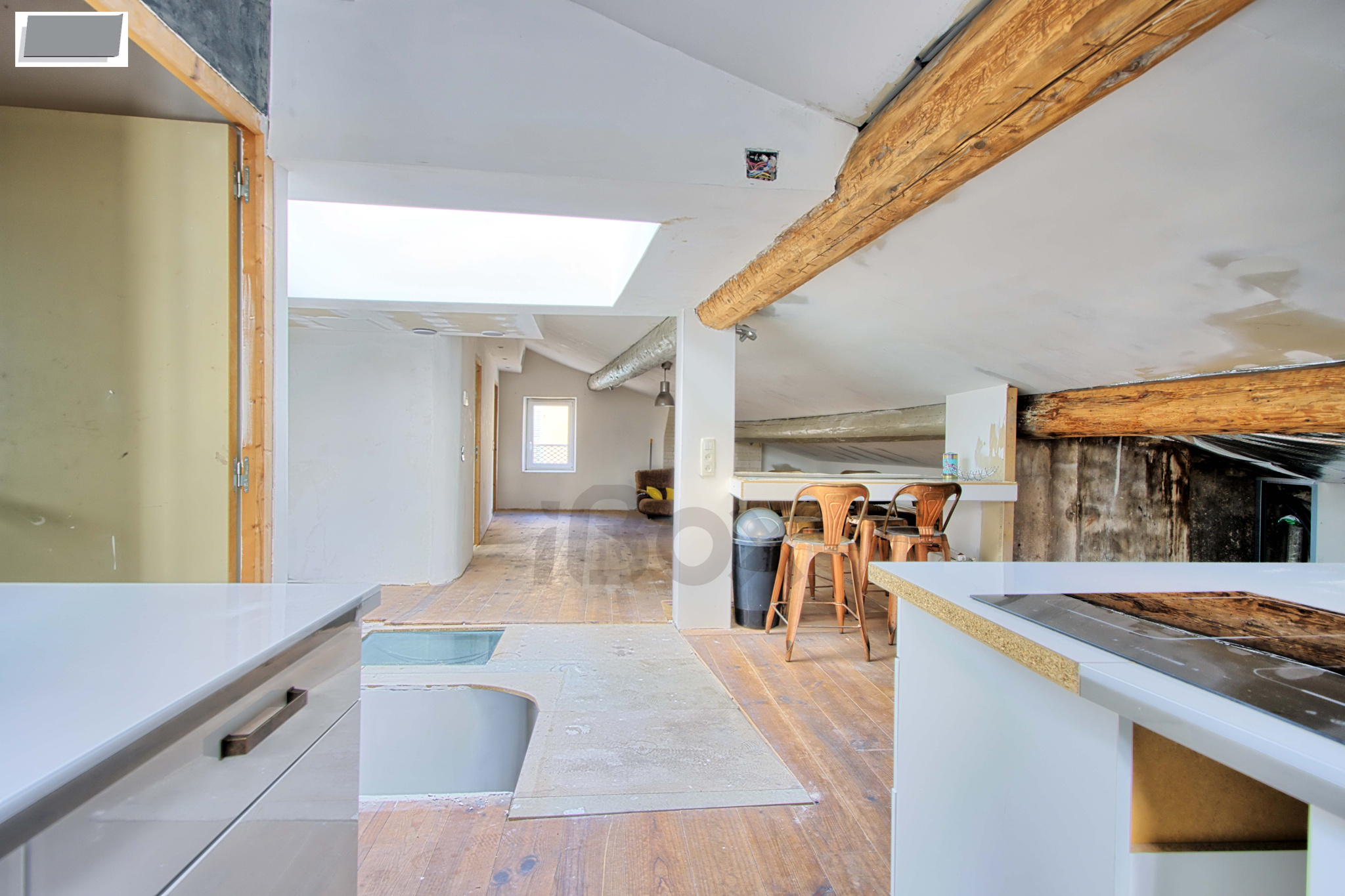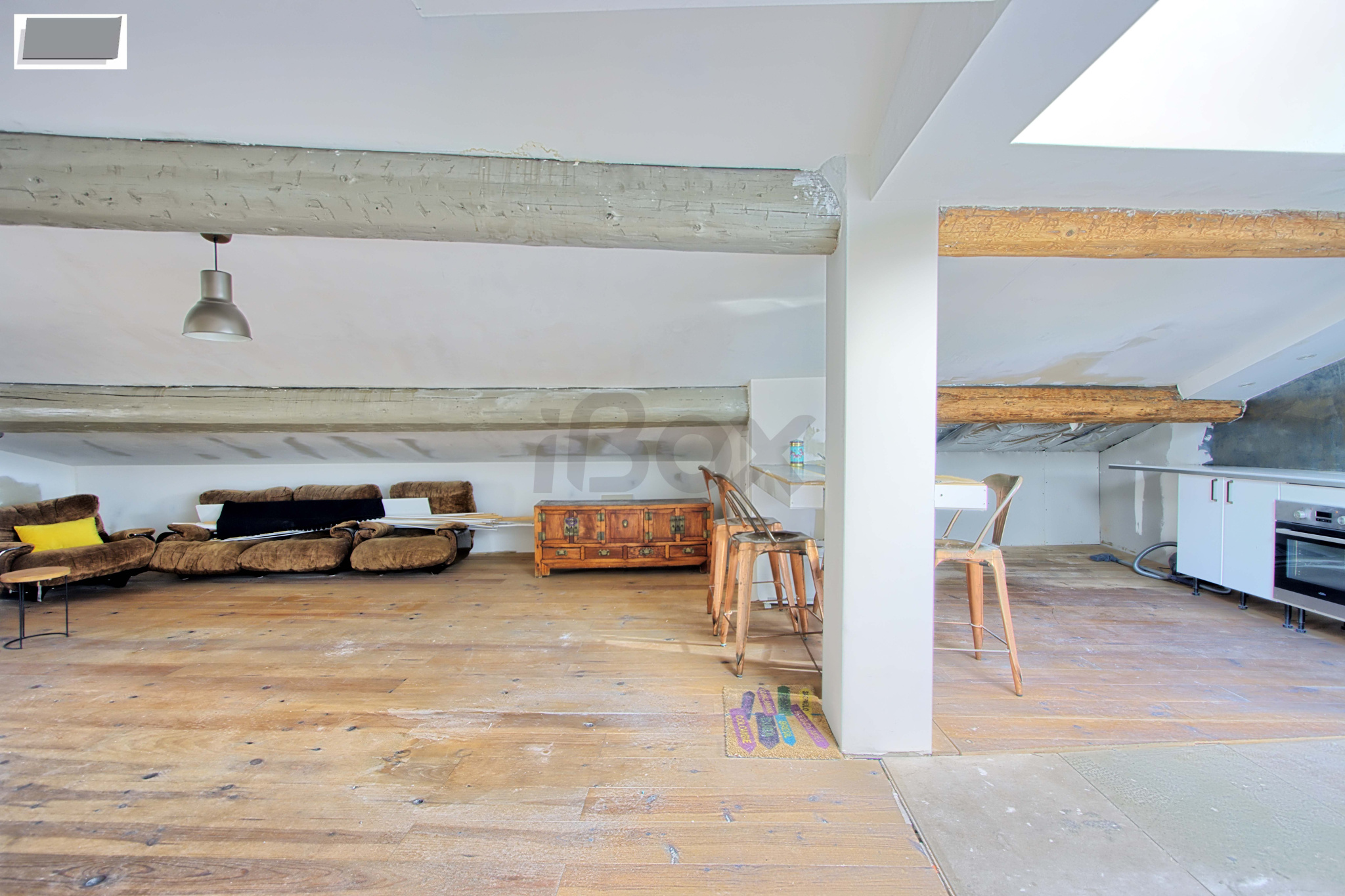 Au dernier étage d'un petit immeuble de 3 étage aux faibles charges, appartement T3 atypique sous les toits.