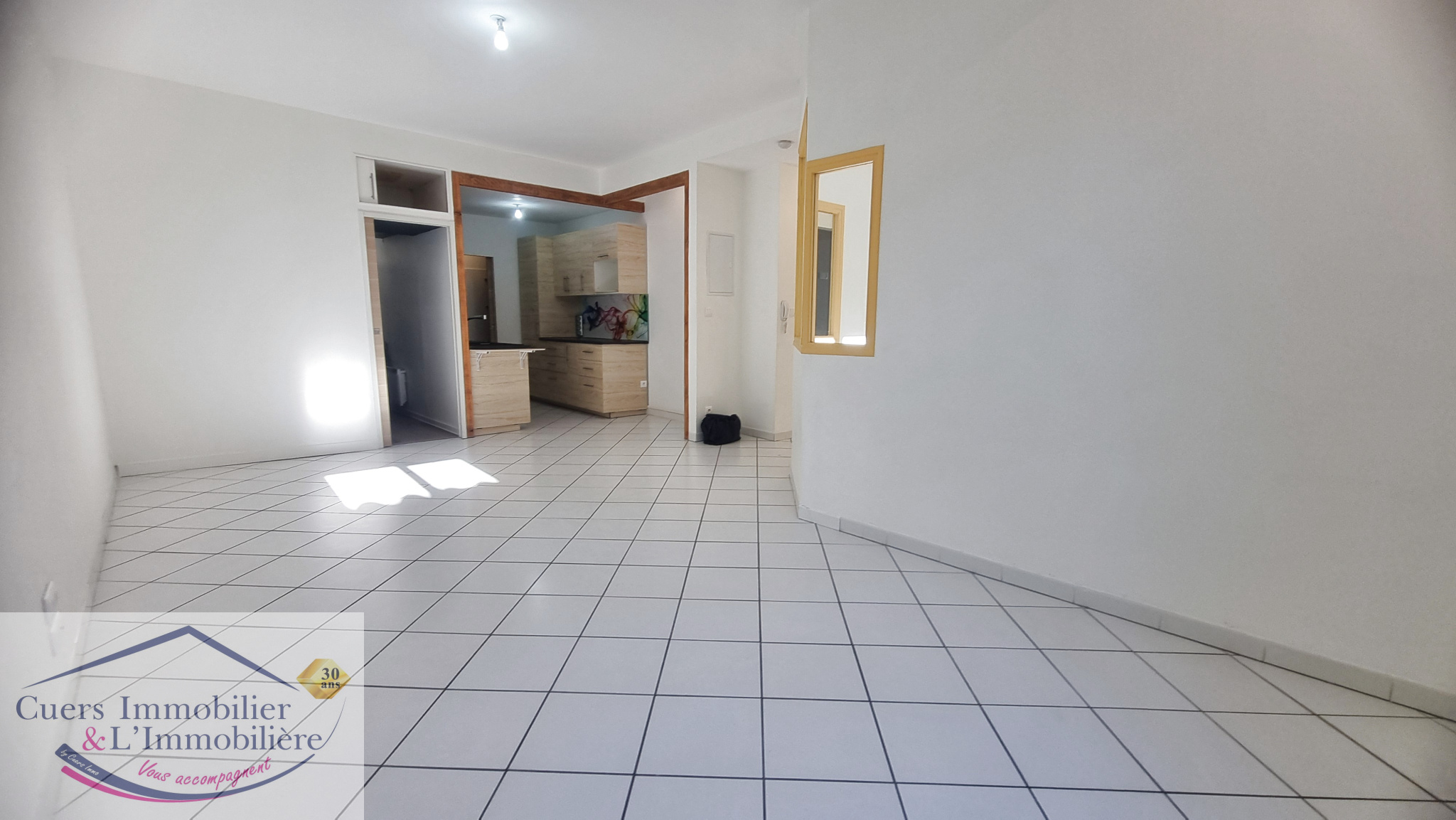 Entrée, Cuisine ouverte avec accés terrasse, beau séjour lumineux avec accès terrasse également, chambre avec placard, salle d'eau avec Wc