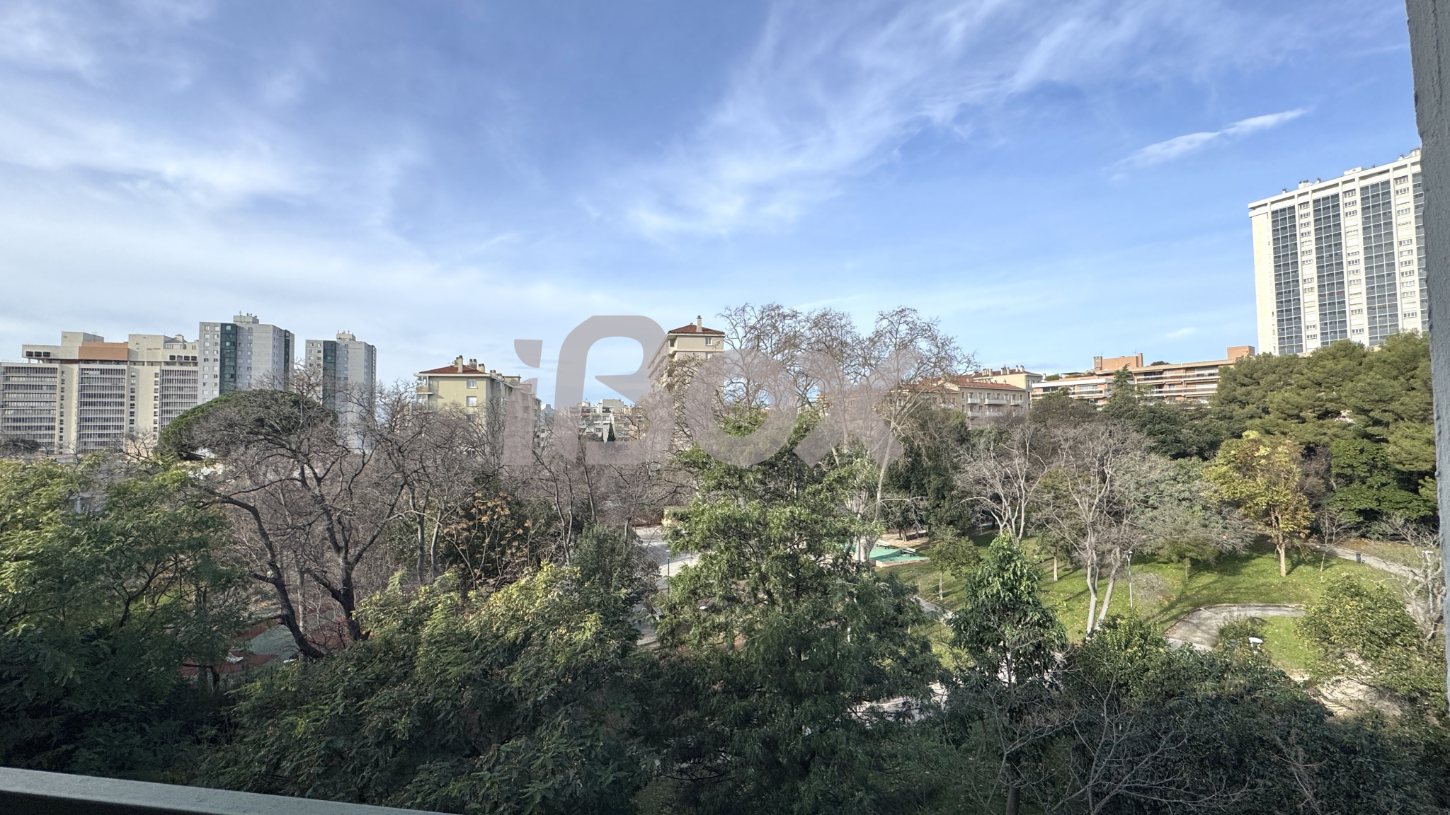 Entrée desservant un double séjour (possibilité chambre supplémentaire) avec accès sur balcon vue parc et verdure, cuisine indépendante aménagée avec logg...