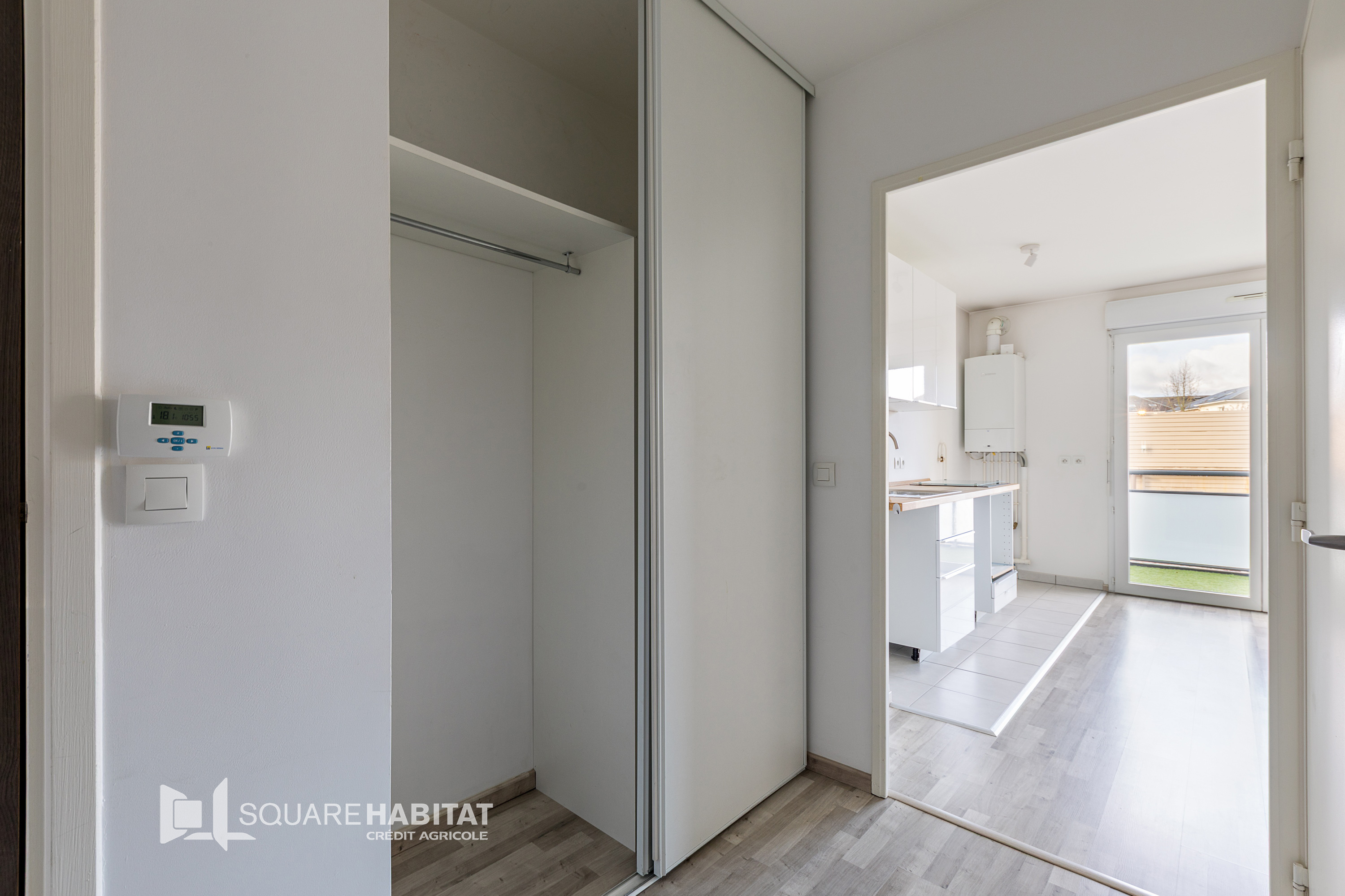 Appartement 2 pièces accesssible PMR situé au 1er étage d'une petite copropriété récente comprenant : entrée, séjour-cuisine, une chambre, salle de douche et WC séparé.