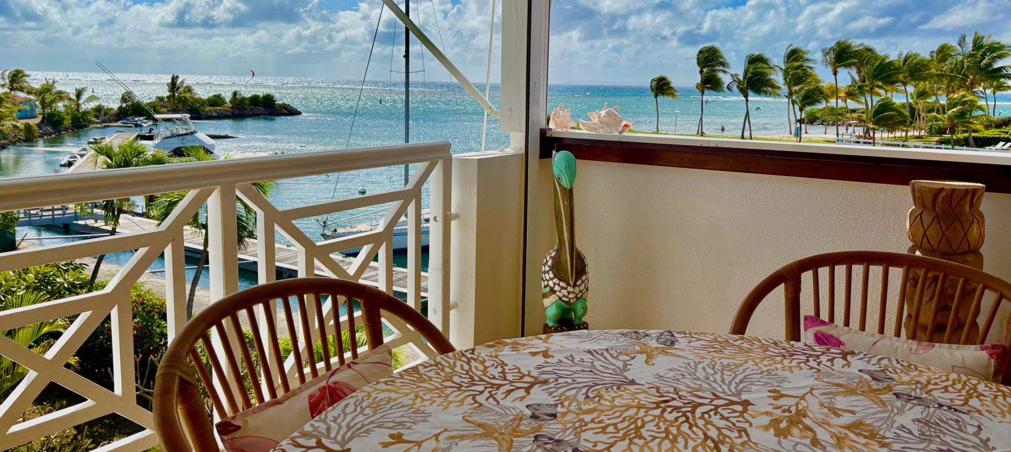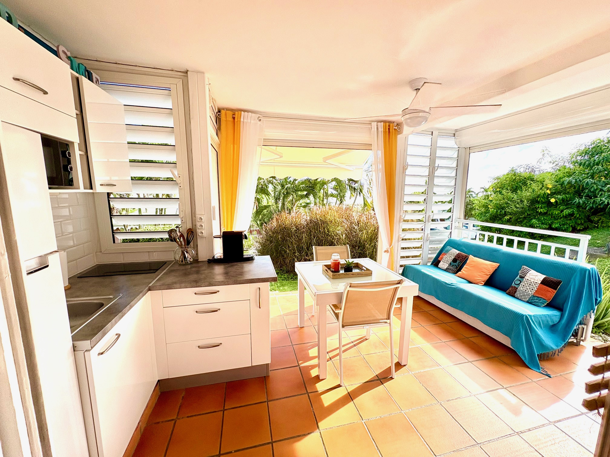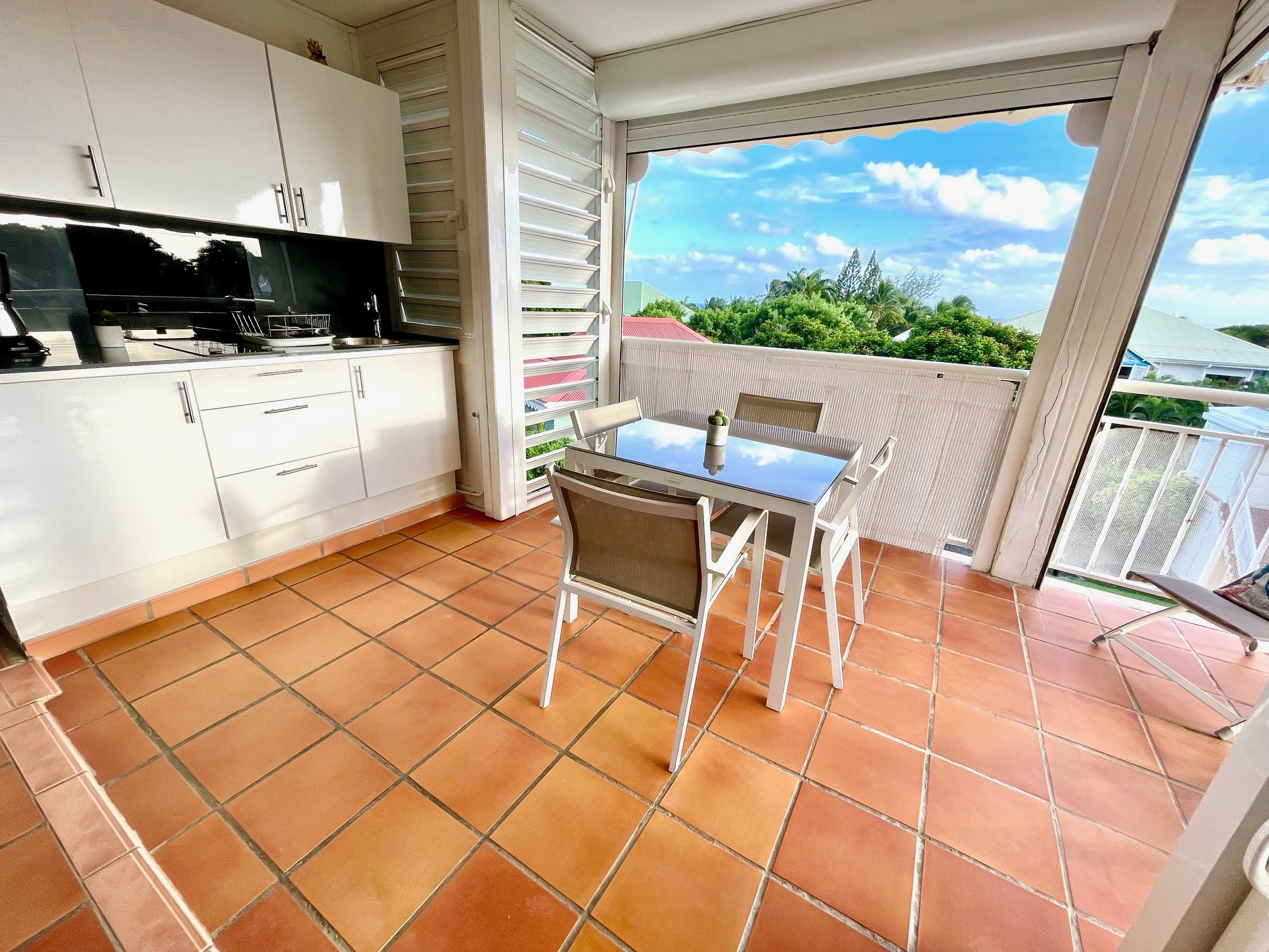 A voir absolument résidence le Manganao Saint-François, appartement idéalement situé offrant une vue mer sur la Pointe des Châteaux et Marie-Galante.