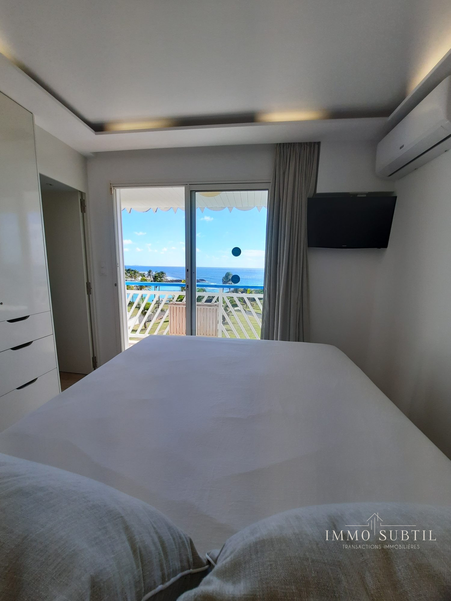 ANSE DES ROCHERS AVEC VUE MER : T2 meublé en étage de 29 m2 (terrasse comprise) équipé pour 4 personnes avec accès direct plage, grande piscine et tennis. La résidence est sécurisée avec parking, gardien et restaurant. T2 cabine composé de 2 couchettes enfants...
