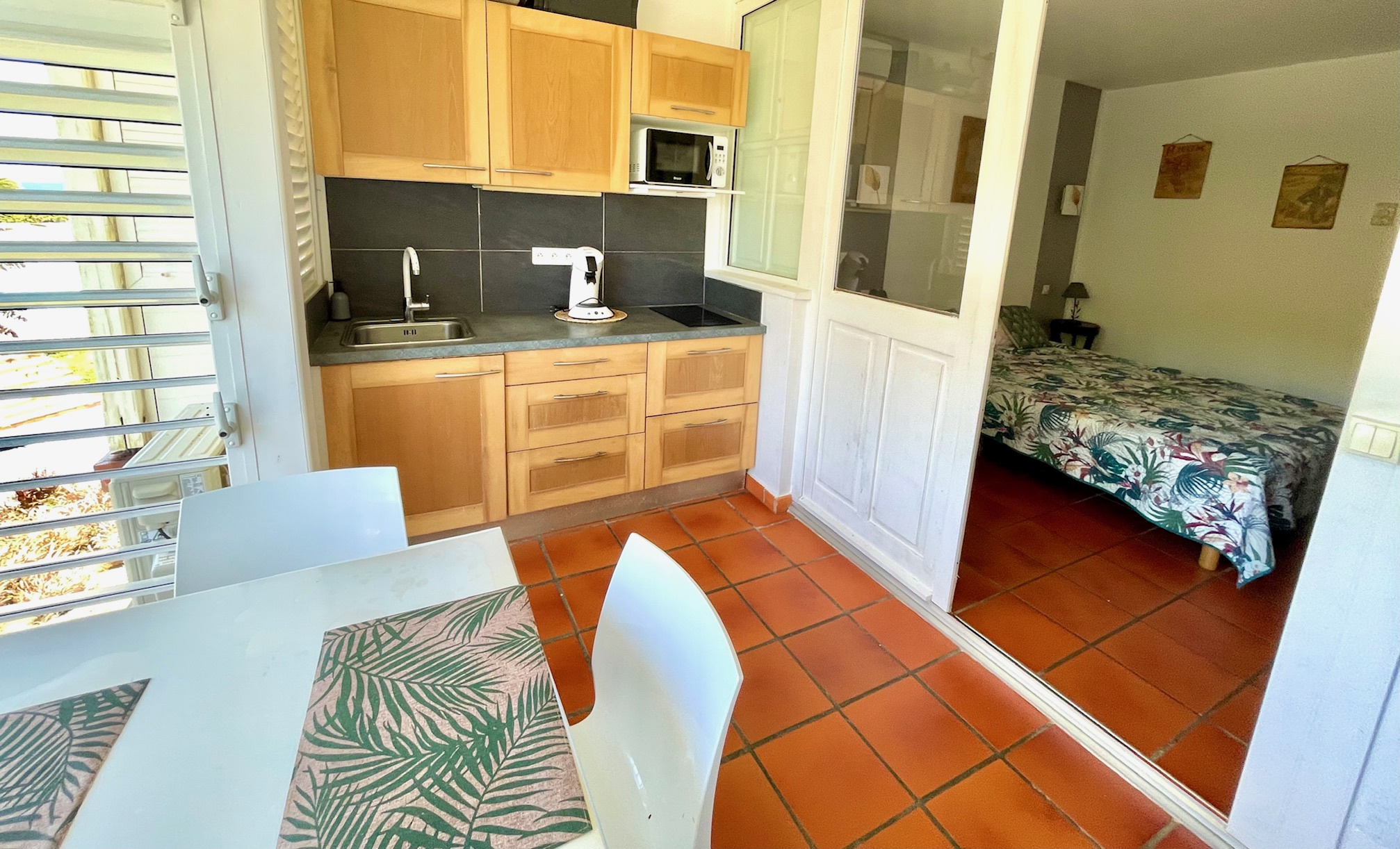 Situé dans un jardin tripical à proximité immédiate d'une plage. ce bien de 25 m2 comprant un espace cu...