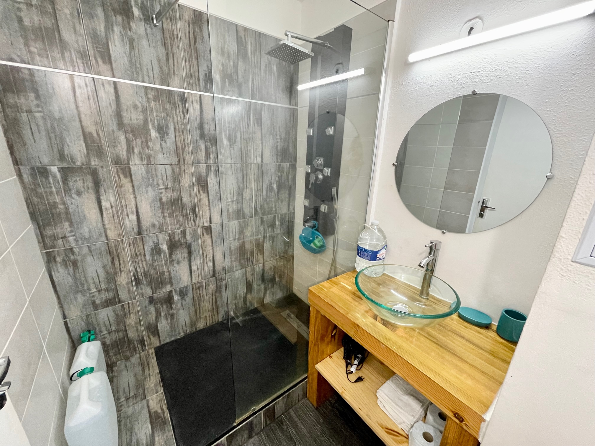 Ce studio est composé d'une entrée avec placard, d'une chambre climatisée, d'une kitchenette sur la...