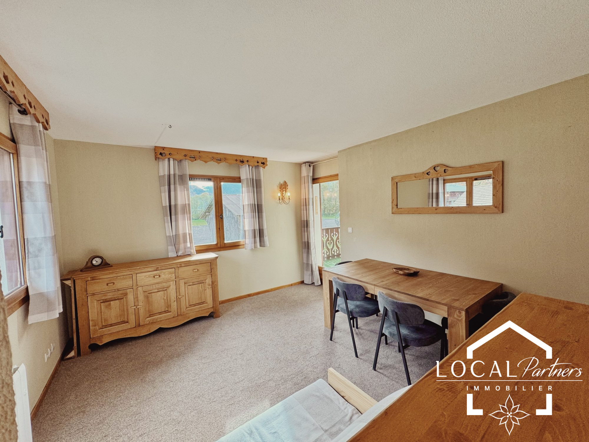 Découvrez ce charmant appartement en duplex situé dans un petit hameau calme, à seulement 4 minutes du centre du village de Samoëns et de ses commodités.