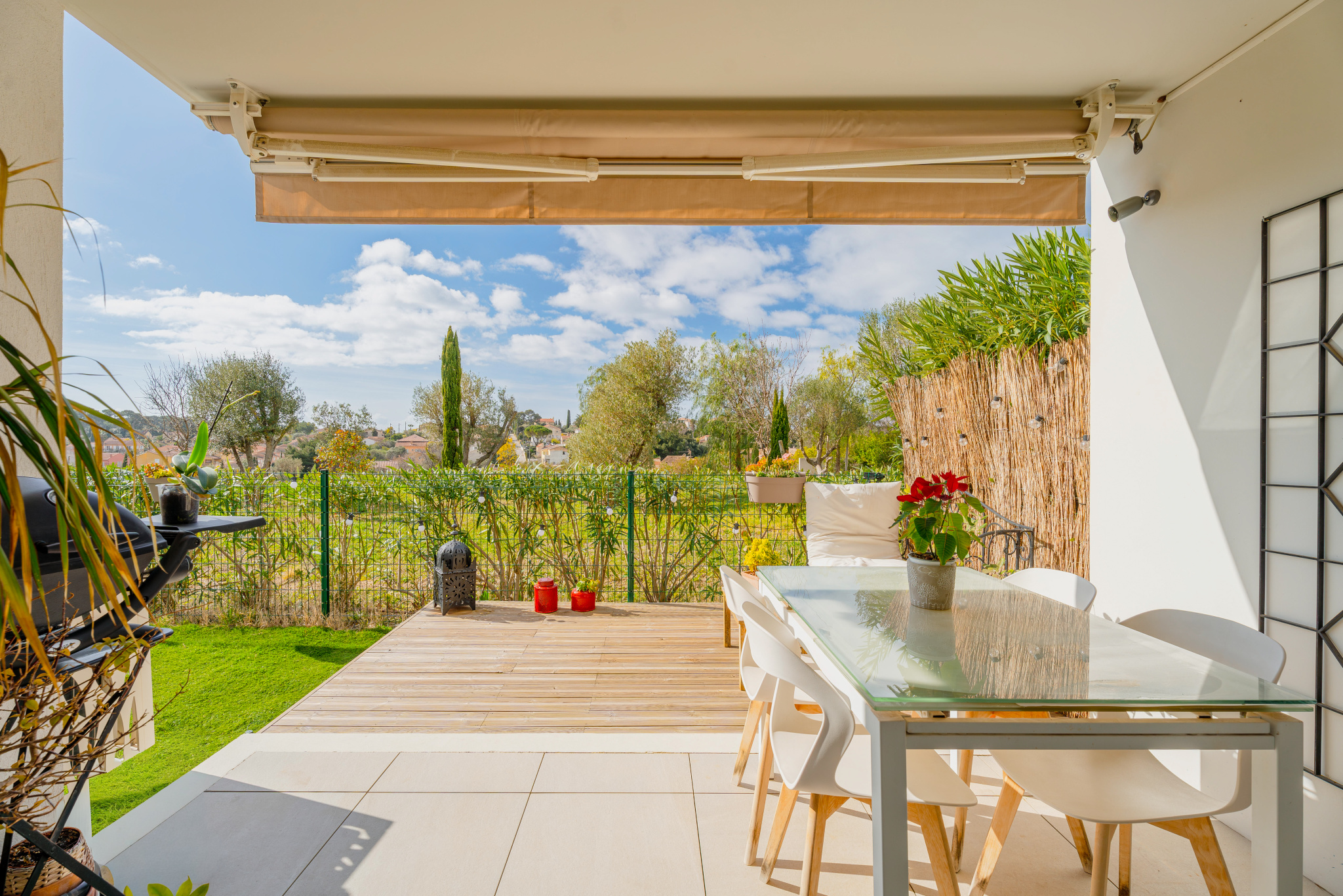 Dans une résidence intimiste de grand standing, découvrez ce superbe appartement T3 de 54 m2 habitables, agrémenté d'une véranda sécurisée de 16 m2 ouvrant sur un magnifique jardin privatif de 153 m2 exposé plein sud. L'entrée dispose de placards int...