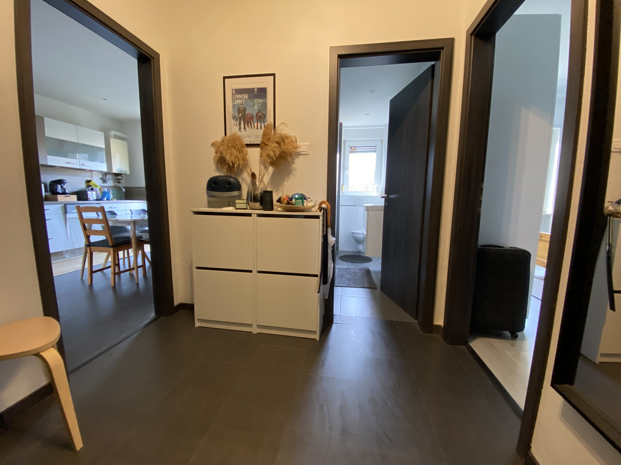 Appartement type 2 pièces entièrement meublé, l'ensemble rénové situé en rez-de-chaussée surélévé dans une copropriété quartier Blies Nord de Sarreguemines. Agencement : entrée-dégagement-placard de rangement, salle de bain-WC, espace séjour avec l'a...