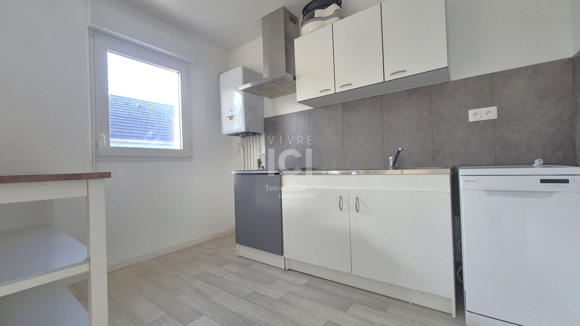 Au calme, au coeur du bourg, T3 exposé sud sans vis à vis avec terrasse, comprenant : Salon/séjour, cuisine semi-ouverte, 2 chambres, SDB, WC séparé, parking et local vélo privatif.
