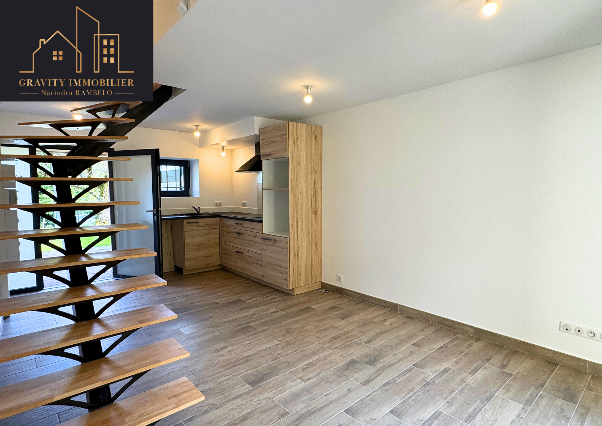 Dans une ancienne bâtisse de caractère entièrement rénovée avec des prestations de qualité, découvrez ce bel appartement T2 en triplex d'environ 47.3 m2 en loi carrez, niché au coeur de la campagne, au calme et proche d'un ruisseau.