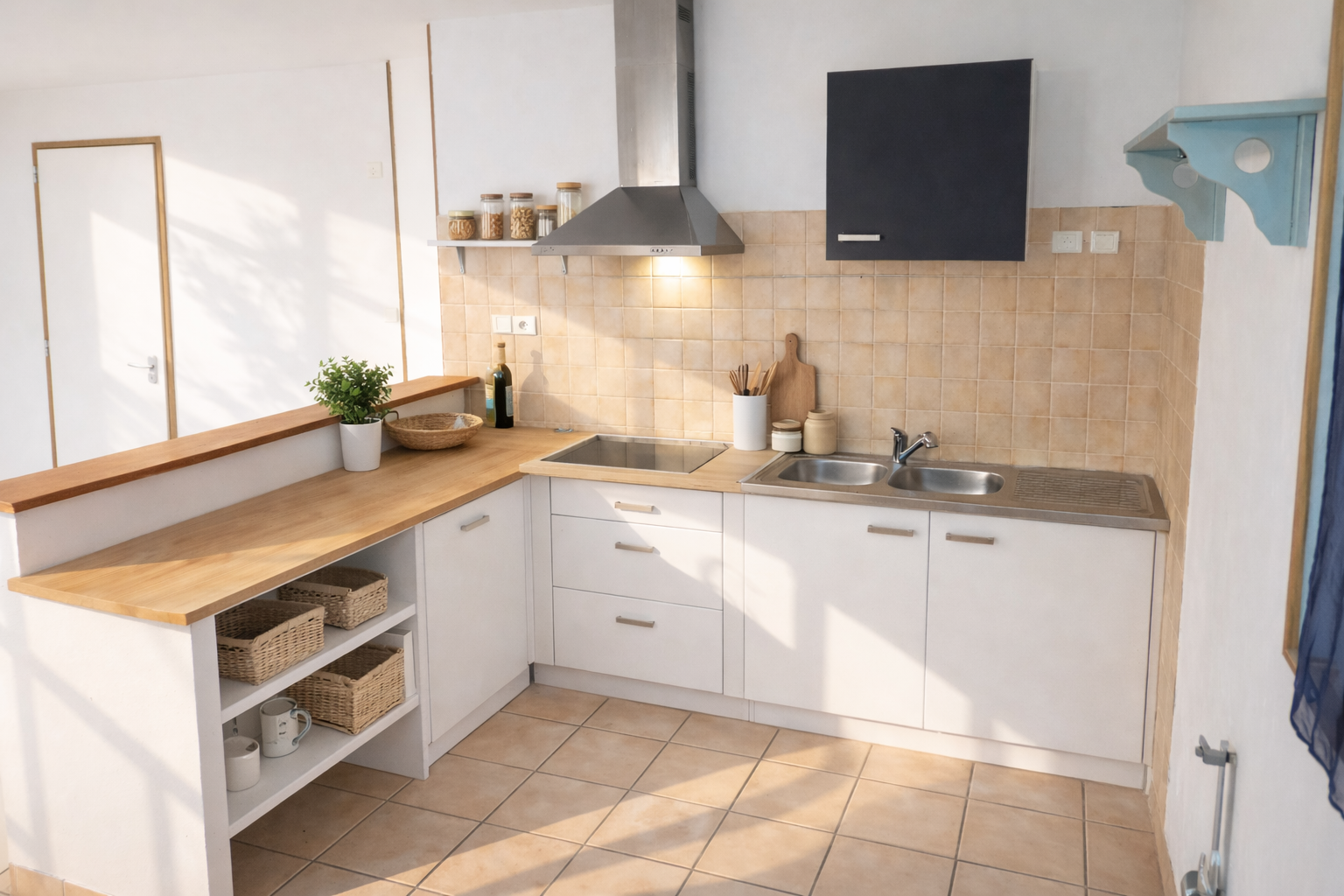 une cuisine, une salle de bains et un WC séparé.