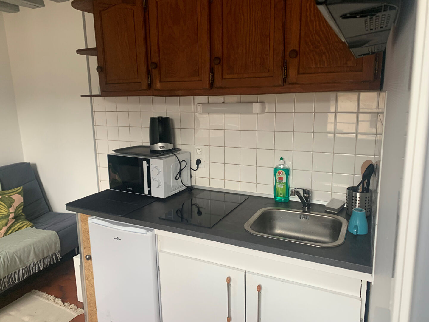 L'entrée dessert une pièce de vie avec cuisine, et salle d'eau.