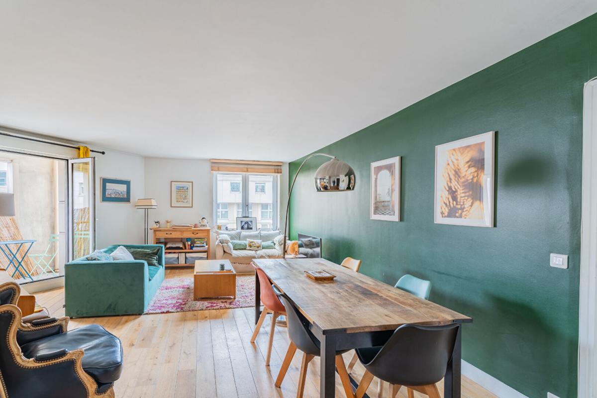 Orienté à l'ouest l'appartement est très lumineux et s'articule autour d'un espace de vie doté d'un grand salon (32 m2) et d'...